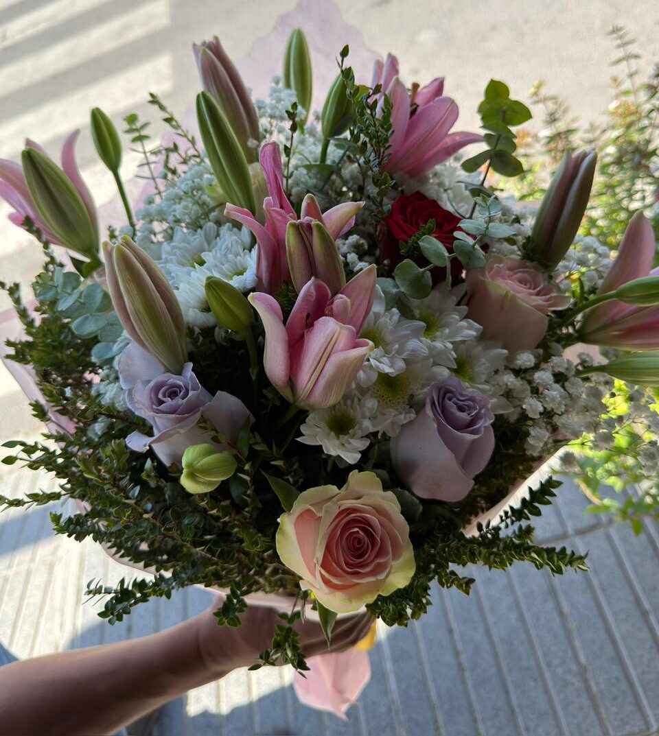 Un ramo delicado y sofisticado, pensado para quienes valoran la armonía y los detalles bien hechos. Este mix Mable combina lilium en botón, rosas en tonos suaves, eucalipto fresco y gipsofilia, logrando un arreglo equilibrado en color, textura y volumen.